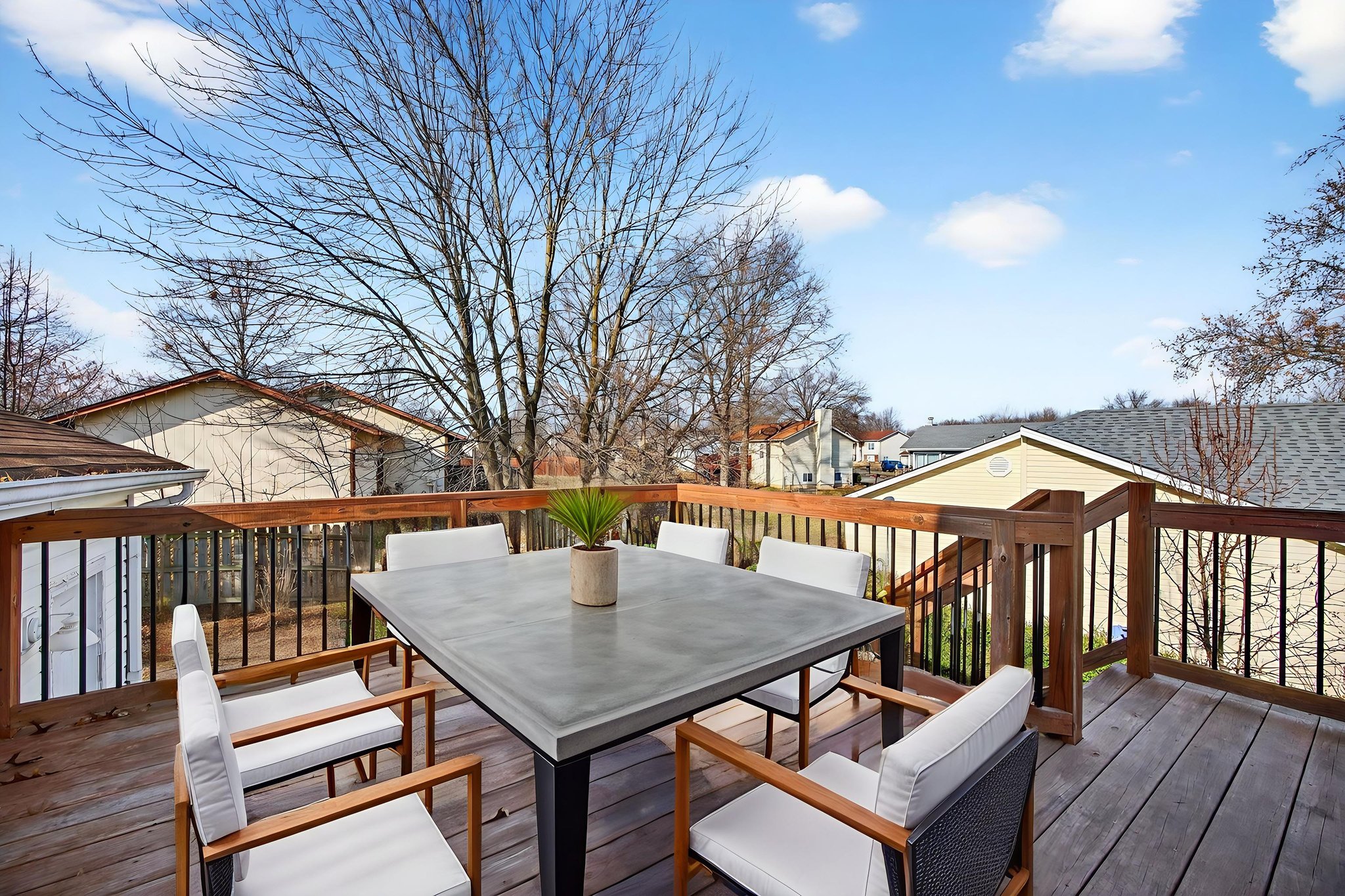 This 3-bedroom, 2-bath home features a new deck, upgraded HVAC, fresh paint, and updated kitchen appliances. In the lower level, enjoy a wood fireplace and utility room with washer and dryer included. Located on a quiet street in a well-kept neighborhood with access to community pool!